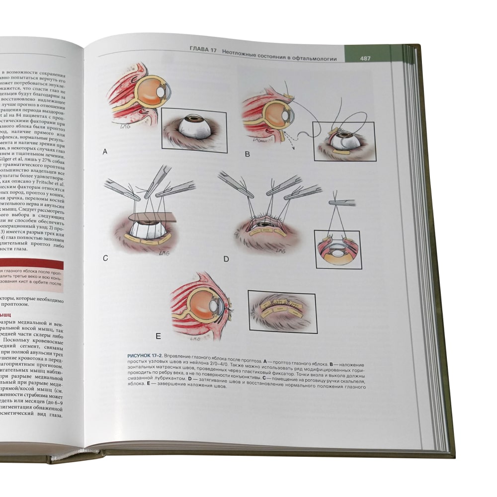 Это поистине уникальное издание содержит подробную структурированную информацию об анатомии, физиологии и патофизиологии глаза, офтальмологическом осмотре и методах диагностики, консервативном и хирургическом лечении болезней глаз, а также неотложных состояний в офтальмологии. В издании вы найдете специализированные главы, посвященные офтальмологии лошадей, жвачных, птиц и экзотических животных. Более тысячи цветных фотографий и иллюстраций точно воссоздают особенности болезней глаз, и наглядно демонстрируют различные методы диагностики и хирургического лечения.