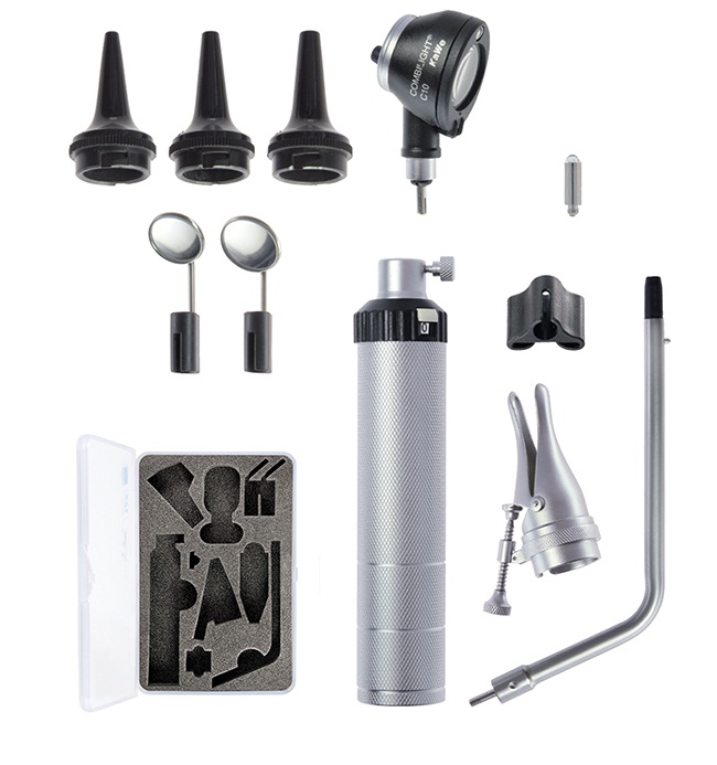 Набор состоит из отоскопа: 1 головка, 1 рукоятка, с принадлежностями