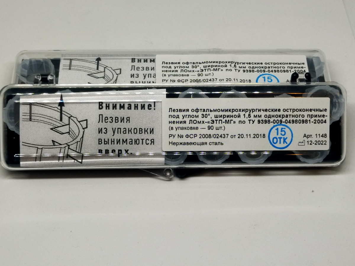 Лезвия офтальмологические микрохирургические остроконечные 30° (90 шт)