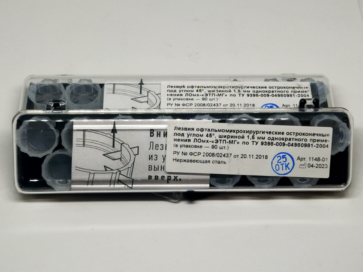 Лезвия офтальмологические микрохирургические остроконечные 45° (90 шт)