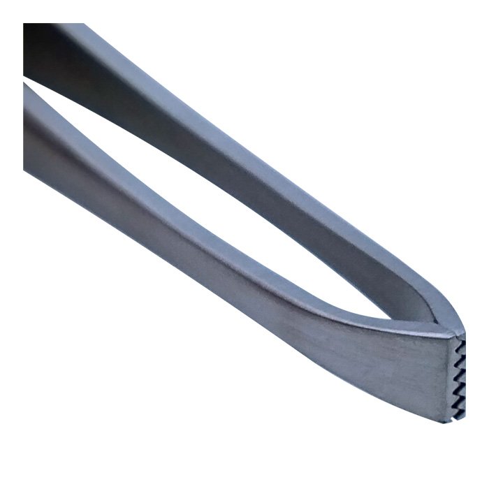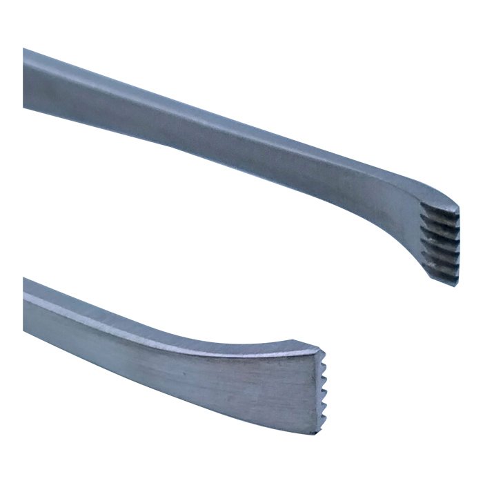 Лапчатая (пластинчатая) рабочая часть — обеспечивает широкий, равномерный и безопасный захват нежной ткани третьего века, предотвращая ее разрыв, повреждение или соскальзывание.